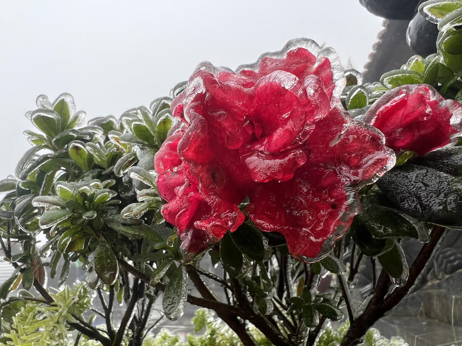 Đỗ quyên nở đỏ rực rỡ trong băng trên đỉnh Fansipan