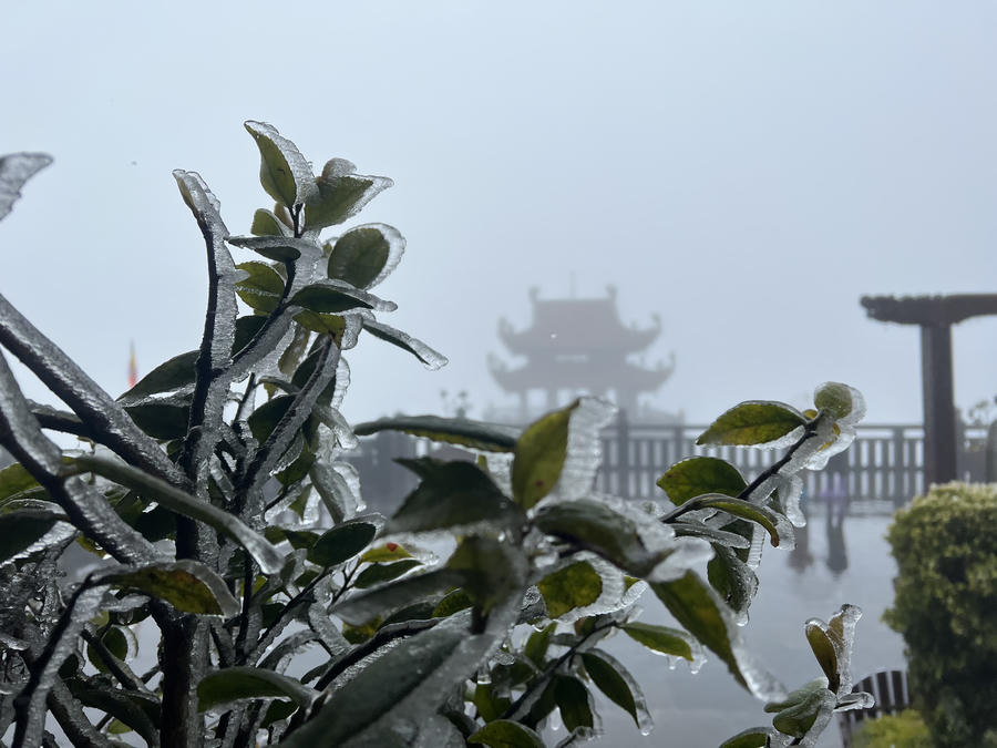 Theo anh Quyền Anh Tuấn, nhân viên khu du lịch Sun World Fansipan Legend, băng giá xuất hiện từ 6h14 sáng ngày 2/4, tại khu vực nhà ga đến cáp treo Fansipan. Nhiệt độ ghi nhận tại thời điểm đó là -1 độ C. Và tới 9h sáng nay, băng vẫn tiếp tục tạo bao phủ trên các nhành cây, hoa, tạo nên những bông hoa băng trong như pha lê. Mái vòm của nhà ga đến cáp treo Fansipan cũng phủ trắng băng.