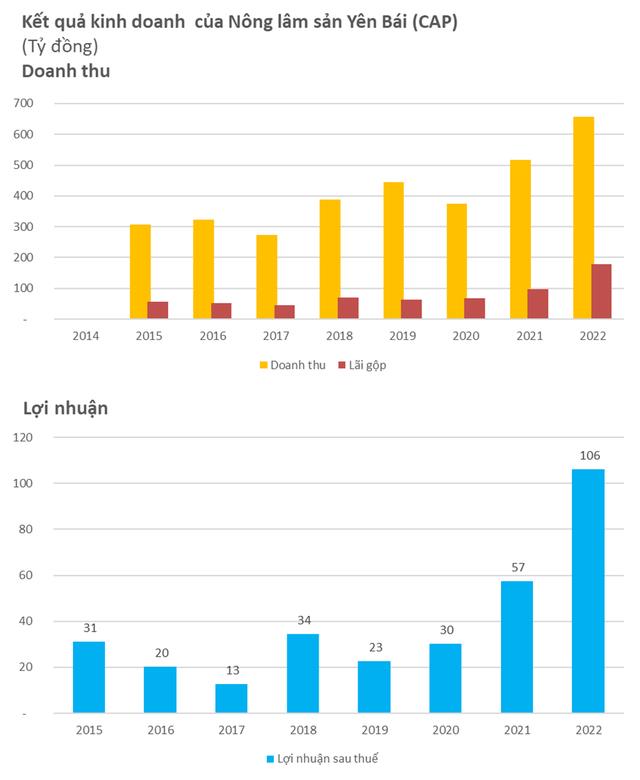 Công ty cổ phần Nông lâm sản thực phẩm Yên Bái (mã CK: CAP) vừa công bố kết quả kinh doanh của năm tài chính kết thúc vào ngày 30/9/2022 với doanh thu thuần đạt 657 tỷ đồng, tăng 27% và lãi sau thuế 106 tỷ đồng, tăng 85% so với cùng kỳ.