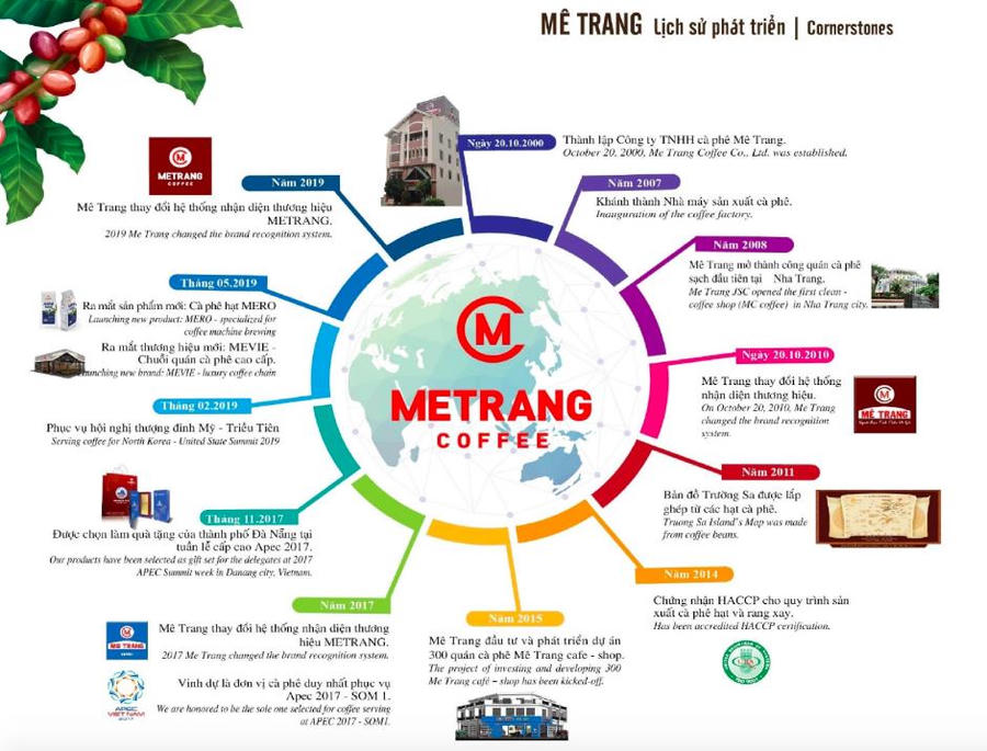 Đến năm 2007, Mê Trang khánh thành nhà máy sản xuất cà phê đầu tiên. Một năm sau đó, Mê Trang mở thành công quán cà phê sạch đầu tiên tại Nha Trang.