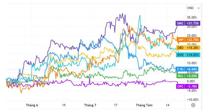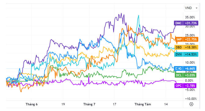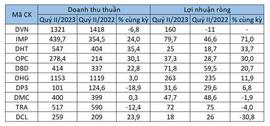Các doanh nghiệp như Dược Hà Tây (HNX: DHT), Dược phẩm OPC (HoSE: OPC), Bidiphar (HoSE: DBD) cũng đạt mức tăng trưởng lợi nhuận 20 – 30% trong quý II.
