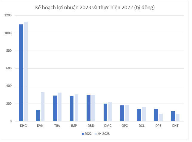 Bởi vậy, khác với các lĩnh vực khác, đa phần doanh nghiệp dược đề ra chỉ tiêu kinh doanh cho năm 2023 có sự tăng trưởng so với nền cao thực hiện 2022. Như, Dược Việt Nam đặt mục tiêu lãi trước thuế 334 tỷ đồng, gấp 2,5 lần thực hiện 2022; Traphaco tăng trưởng 11%, Dược Cửu Long tăng 13%.