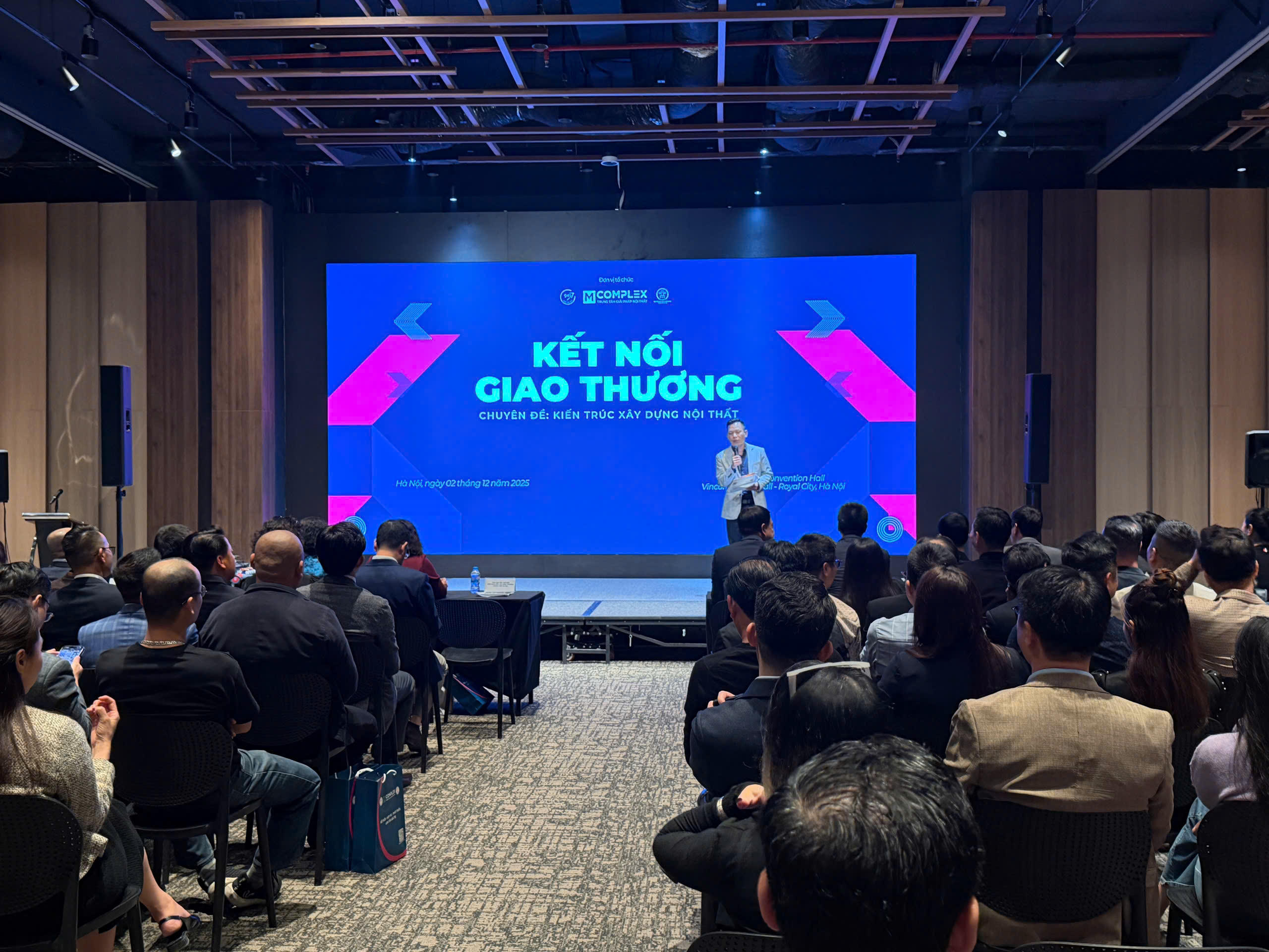 Chiều 2/12, tại M Complex Convention Hall (Royal City, Hà Nội), chương trình Kết nối giao thương với chuyên đề “Kiến trúc xây dựng nội thất” do M Complex phối hợp cùng SME 9497 tổ chức đã thu hút hàng trăm doanh nghiệp trong hệ sinh thái vật liệu, thiết kế và xây dựng. Sự kiện nhằm tăng cường liên kết cộng đồng doanh nghiệp và mở rộng cơ hội hợp tác đa ngành.