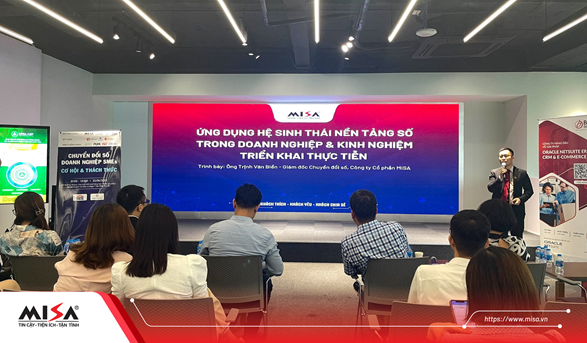 Ngày 22/06/2023, tại Hội thảo Chuyển đổi số doanh nghiệp SMEs - Cơ hội và thách thức do Sở Kế hoạch & Đầu tư thành phố Hà Nội chủ trì tổ chức, Công ty Cổ phần MISA (MISA) đã có bài tham luận với chủ đề “Ứng dụng hệ sinh thái nền tảng số trong Doanh nghiệp - Kinh nghiệm triển khai thực tiễn” được các doanh nghiệp tham dự đánh giá cao.
