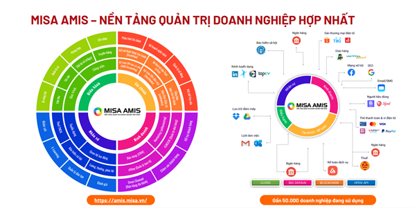 Đồng hành cùng doanh nghiệp chuyển đổi số, MISA đã phát triển nền tảng quản trị hợp nhất MISA AMIS. Đây là giải pháp được phát triển theo mô hình hội tụ dữ liệu giúp quản trị mọi hoạt động cốt lõi của doanh nghiệp bao gồm Kế toán - Tài chính, Marketing - Bán hàng, Quản trị nhân sự và Văn phòng số. Đặc biệt, MISA AMIS kết nối với các bên thứ ba, mở rộng hệ sinh thái cho doanh nghiệp, đặc thù hoá tối đa theo yêu cầu của mỗi khách hàng.