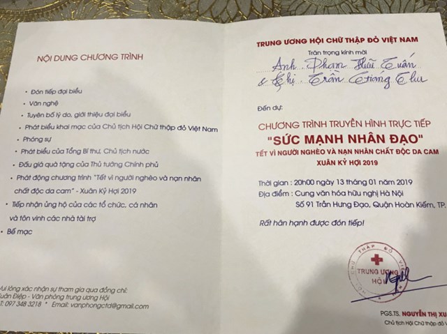 Tối 13/1, tại Cung Văn hóa Hữu nghị Hà Nội diễn ra Chương trình “Sức mạnh nhân đạo 2019” với chủ đề “Tết vì người nghèo và nạn nhân chất độc da cam” Xuân Kỷ Hợi 2019.