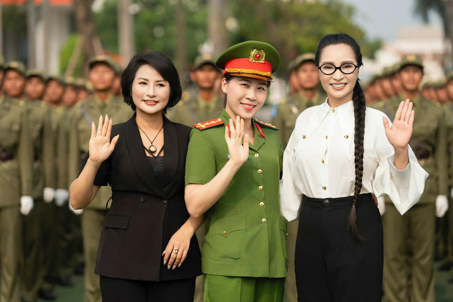 Hình ảnh nữ doanh nhân trong trang phục thanh lịch, sánh bước cùng các chiến sĩ trong đội hình trang nghiêm, đã để lại ấn tượng đẹp về một tấm lòng nhân ái, luôn hướng về cộng đồng và trân trọng những người đang góp phần giữ gìn sự bình yên cho đất nước.