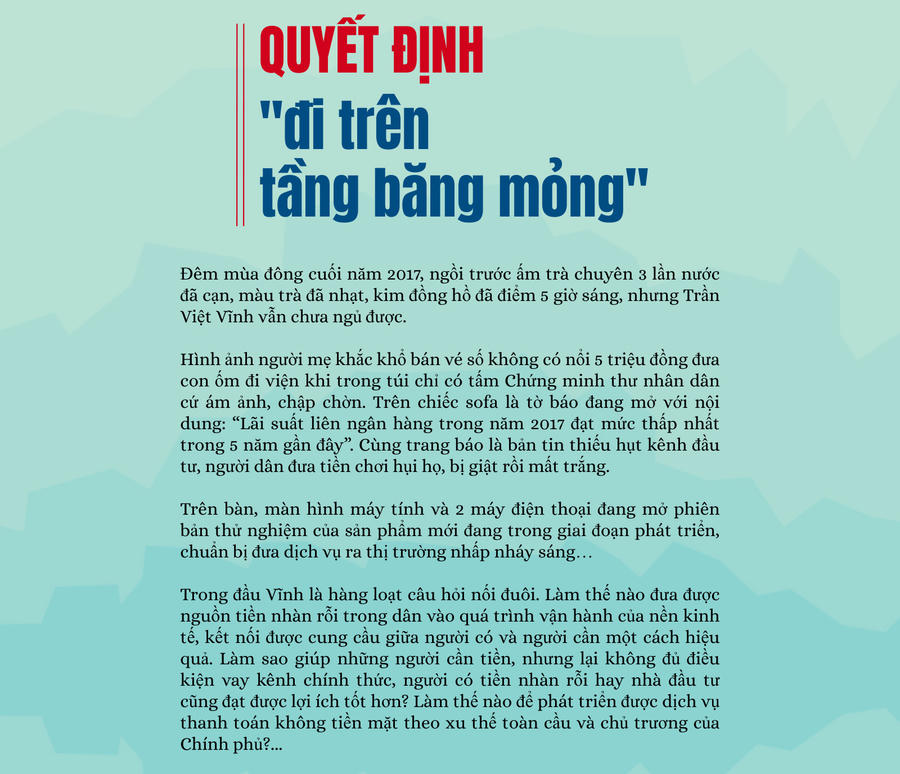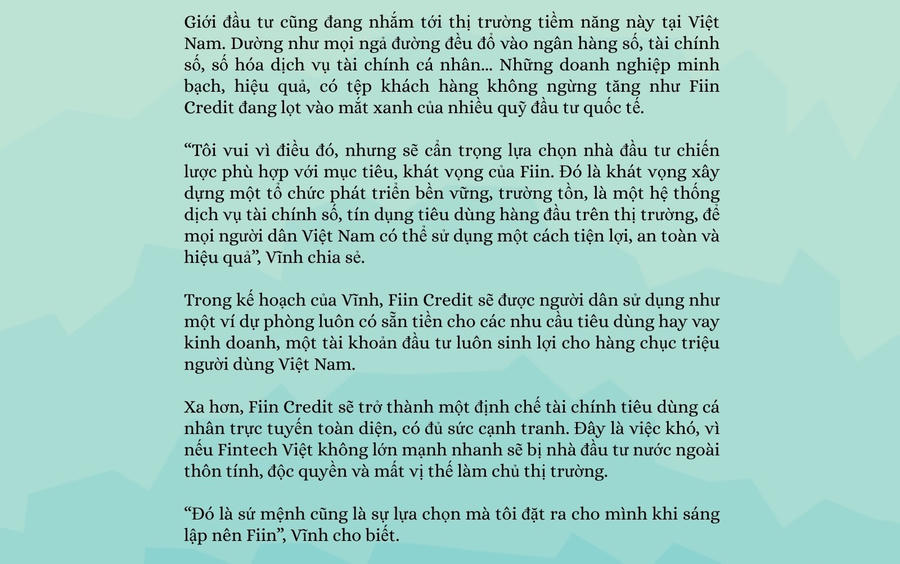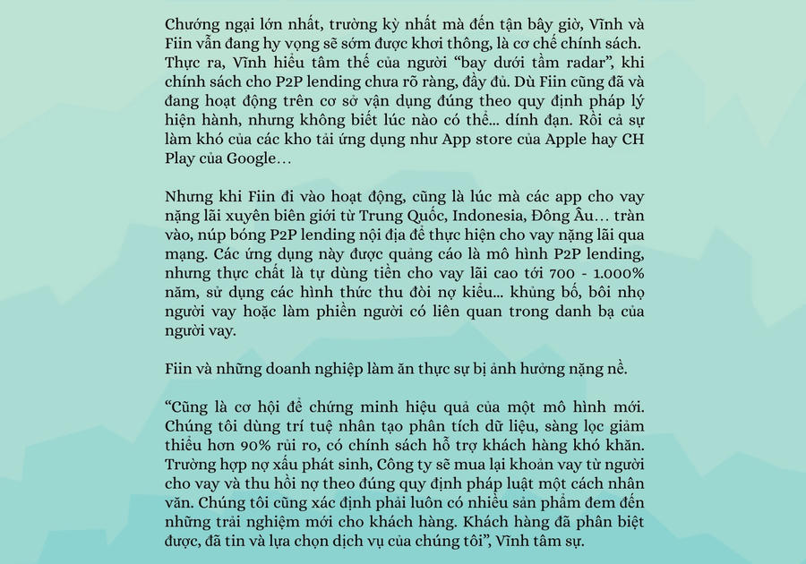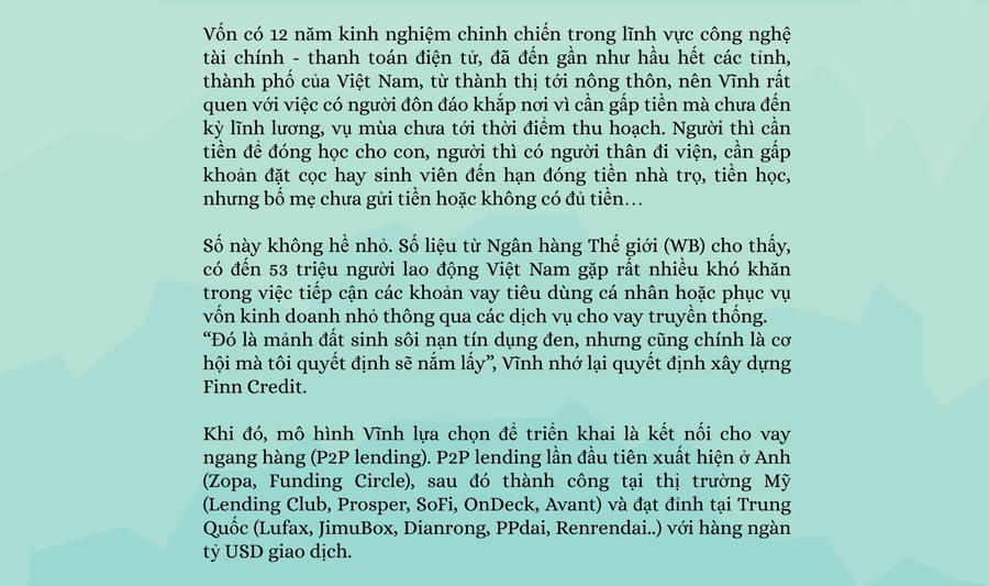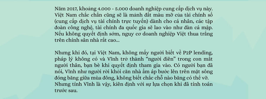 Quyết định bước lên tầng băng mỏng cùng với Fiin Credit, với P2P Lending, Trần Việt Vĩnh đã chọn con đường đầy chông gai, nhưng nếu không, doanh nghiệp Việt sẽ thua trắng.