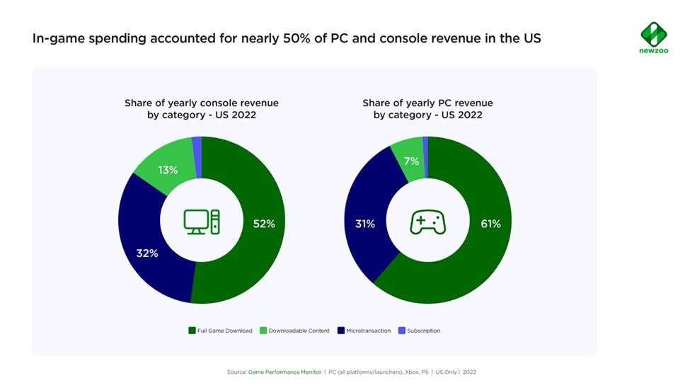 Các con số khác trong báo cáo cho thấy thị trường đang ổn định. Thời gian chơi trung bình của mỗi game thủ đã giảm 20% từ năm 2021 đến năm 2022, với số lượng người chơi trung bình 1000 giờ một tuần giảm nhanh chóng 37%. Báo cáo của Newzoo cũng chỉ ra rằng thị trường PC và console đã trở nên cân bằng hơn, khi các game thủ nữ và chiếm 40% cơ sở khách hàng.