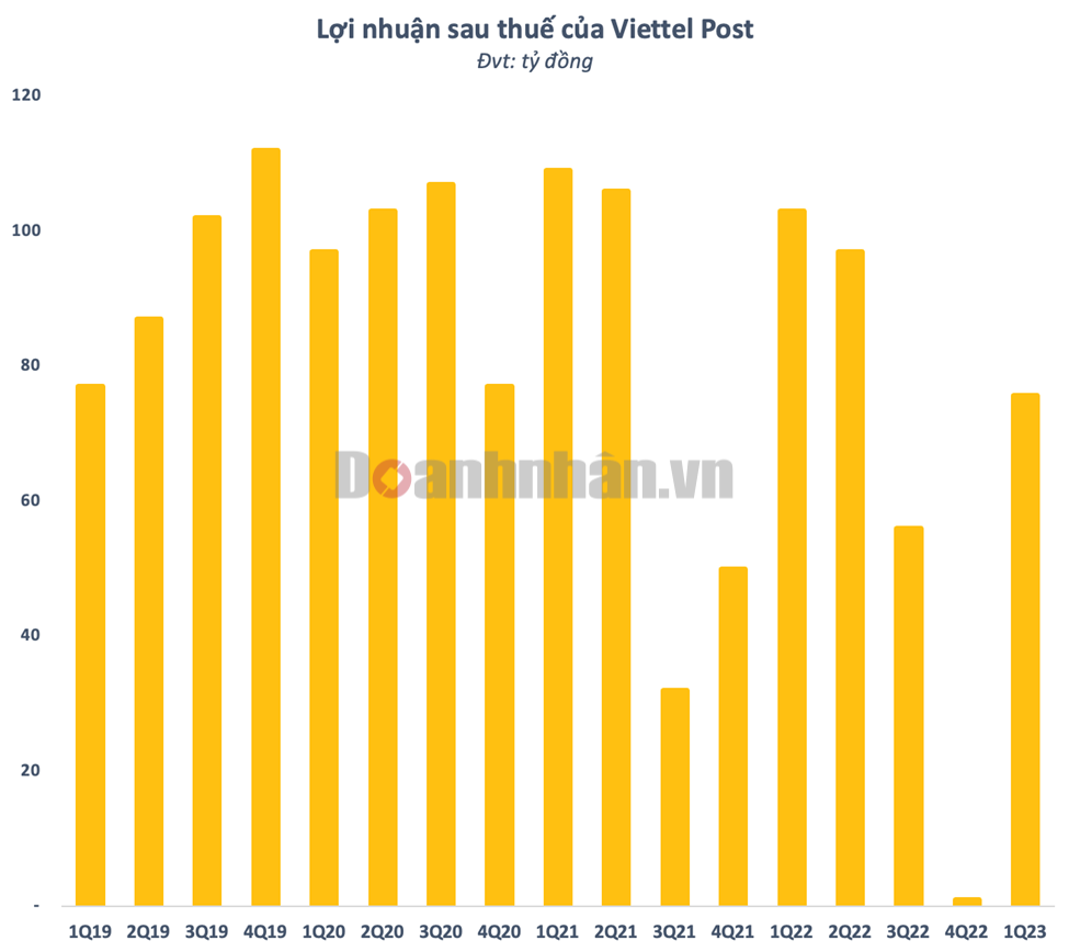 Theo báo cáo tài chính hợp nhất quý 1/2023, Tổng CTCP Bưu chính Viettel (Viettel Post – mã CK: VTP) ghi nhận doanh thu đạt 4.772 tỷ đồng, giảm 17,3% so với cùng kỳ và là mức thấp nhất của trong vòng 11 quý kể từ quý 2/2020. Tuy nhiên, biên lãi gộp của Viettel Post đã được cải thiện lên mức 3,7% từ mức 3,2% cùng kỳ. Lợi nhuận gộp đạt 176,5 tỷ đồng, giảm 3,3% so với cùng kỳ.
