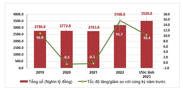 Tính chung 7 tháng năm 2023, tổng mức bán lẻ hàng hóa và doanh thu dịch vụ tiêu dùng theo giá hiện hành ước đạt 3.529.800 tỷ đồng, tăng 10,4% so với cùng kỳ năm trước, (cùng kỳ năm 2022 tăng 15,7%), nếu loại trừ yếu tố giá tăng 9,6% (cùng kỳ năm 2022 tăng 11,7%).