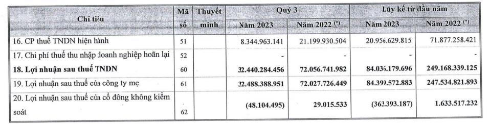 Trong quý III, chi phí tài chính tăng 19,9% lên 22,48 tỷ đồng; tổng chi phí bán hàng và quản lý doanh nghiệp giảm 12,5%, về 13,06 tỷ đồng.