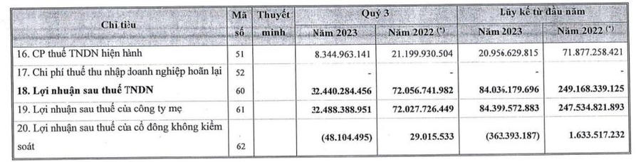 Lãi quý III/2023 giảm 55% so với cùng kỳ