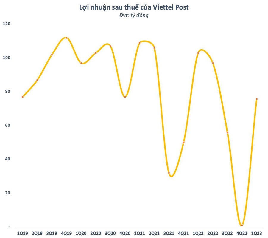 Kết quả, Viettel Post lãi ròng 75,7 tỷ đồng, giảm 26,7% so với quý đầu năm ngoái. Biên lãi ròng chỉ 1,5% tương ứng 100 đồng doanh thu đem về vỏn vẹn 1,5 đồng lãi. Theo giải trình, lợi nhuận giảm là do tăng chi phí vận hành và chi phí nhân công để đảm bảo chất lượng dịch vụ.