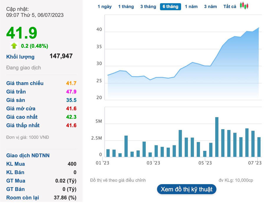 Trên thị trường, cổ phiếu VTP đã liên tục đi lên kể từ đầu quý 2 qua đó leo lên vùng giá cao nhất trong vòng hơn 8 tháng. Thị giá VTP hiện đã tăng gần 60% sau hơn 3 tháng qua và đang giao dịch quanh mức 42.000 đồng/cp. Vốn hoá tương ứng đạt trên 4.700 tỷ đồng.