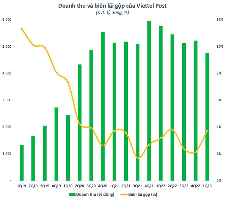 Về kết quả kinh doanh, báo cáo tài chính hợp nhất quý 1/2023 của Viettel Post với doanh thu đạt 4.772 tỷ đồng, giảm 17,3% so với cùng kỳ. Đây cũng là mức doanh thu thấp nhất của Viettel Post trong vòng 11 quý kể từ quý 2/2020.