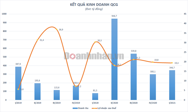 Doanh thu tăng đột biến, Quốc Cường Gia Lai (QCG) báo lãi quý 1/2021 đến 19,4 tỷ đồng nhưng vẫn giảm 36% so cùng kỳ