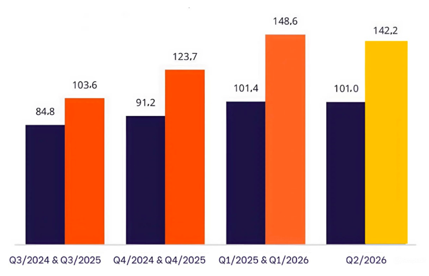 Bước sang quý II/2026, thị trường được dự báo sẽ có sự điều chỉnh nhẹ khi doanh số ước đạt 142.200 tỷ đồng, giảm hơn 4% so với quý trước. Tuy nhiên, sản lượng hàng hóa vẫn tiếp tục tăng, cho thấy nhu cầu tiêu dùng duy trì ổn định nhưng giá trị đơn hàng có xu hướng thấp hơn.