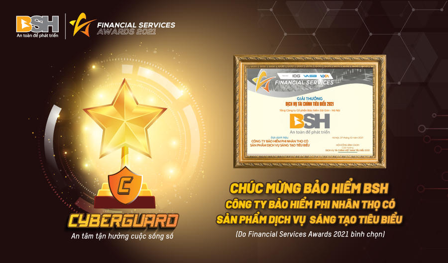 Vừa qua sản phẩm bảo hiểm rủi ro không gian mạng của BSH đã xuất sắc được bình chọn “Sản phẩm Dịch vụ Sáng tạo tiêu biểu” trong ngành bảo hiểm phi nhân thọ năm 2021 trong khuôn khổ Giải thưởng Dịch vụ Tài chính tiêu biểu - Financial Service Awards (FSA).