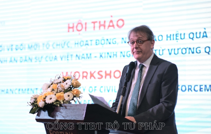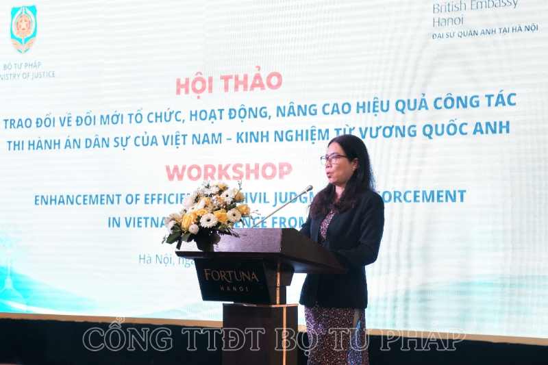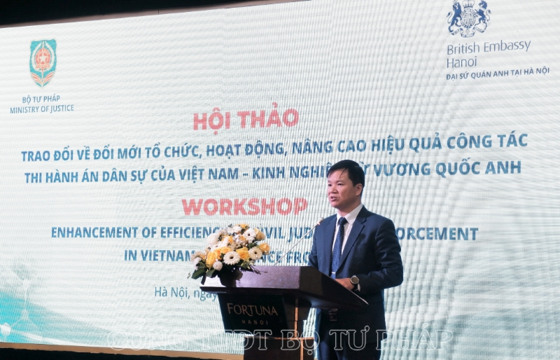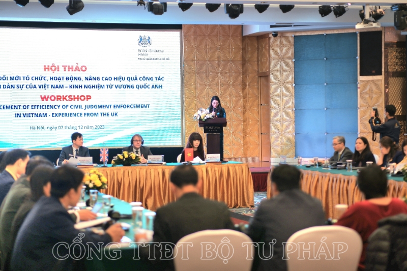 Thực hiện Bản ghi nhớ về hợp tác trong lĩnh vực pháp luật và tư pháp giữa Chính phủ nước CHXHCN Việt Nam và Chính phủ Vương quốc Liên hiệp Anh, Bắc Ai-Len ký năm 2008, sáng 07/12, tại Hà Nội, Bộ Tư pháp chủ trì, phối hợp với Đại sứ quán Vương quốc Liên hiệp Anh và Bắc Ai-Len tại Hà Nội tổ chức Hội thảo với chủ đề “Trao đổi về đổi mới tổ chức, hoạt động, nâng cao hiệu quả công tác thi hành án dân sự của Việt Nam - kinh nghiệm từ Vương Quốc Anh”.