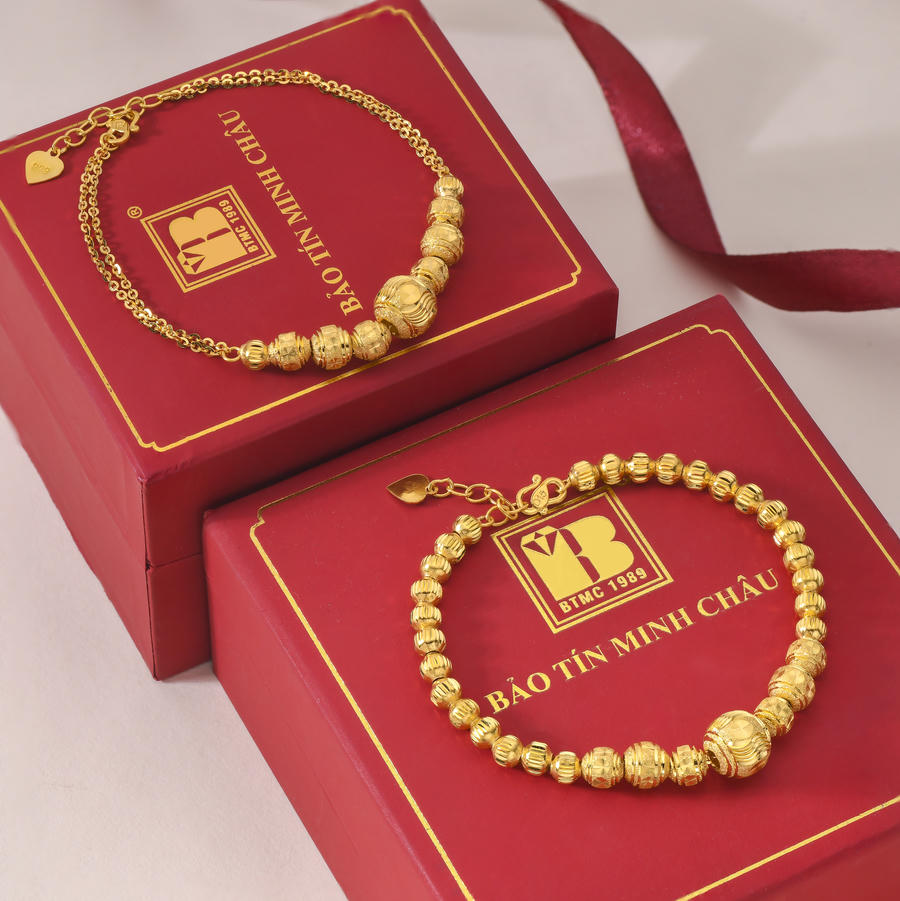 Trong dịp Thần Tài 2026, BTMC giới thiệu các dòng trang sức vàng 24K như lắc tay, kiềng cổ, hoa tai, charm,... được chế tác tinh xảo mang vẻ đẹp sang trọng và giá trị tích luỹ bền vững. Mỗi sản phẩm không chỉ là phụ kiện thời trang tinh tế, phù hợp làm quà tặng dịp đầu năm mà còn mang ý nghĩa phong thuỷ, may mắn, thịnh vượng và sung túc.