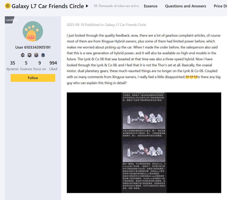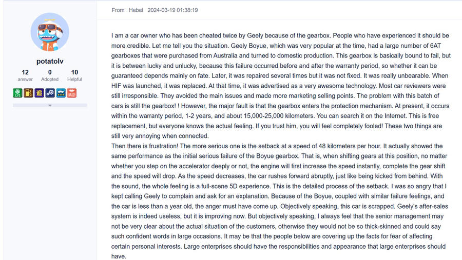 Chery, với hệ thống Kunpeng DHT tương tự Geely, cũng gặp phải các phản hồi tương tự. Các dòng Tiggo 8 Pro e+ và Exeed Yaoguang C-DM được trang bị hộp số hybrid 3 cấp kết hợp hai mô-tơ điện. Một số người dùng cho biết trải nghiệm chuyển đổi giữa điện và xăng có độ trễ, đặc biệt khi leo dốc hoặc tăng tốc nhanh. Trên các diễn đàn như Zhihu hay Hupu, nhiều người tỏ ra e ngại về chi phí bảo trì lâu dài do cấu trúc truyền động quá nhiều linh kiện, từ động cơ xăng đến mô-tơ điện, pin, và hộp số đa cấp.