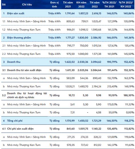 Kết quả tăng trưởng giá cổ phiếu của Thủy điện Vĩnh Sơn – Sông Hinh có mức độ liên quan chặt chẽ với kết quả kinh doanh hoạt động được đạt được của công ty năm 2022.