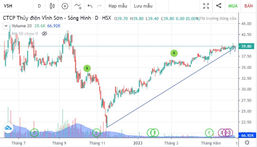 Trên thị trường giá cổ phiếu VSH ngày 11/11/2022 neo ở mức 23.830 đồng/cổ phiếu. Và đến thời điểm hiện tại ngày 9/6/2023 giá cổ phiếu VSH đang đeo ở mức 39.800 đồng/cổ phiếu, tức tăng trưởng 67% so với thời điểm tháng 11 năm 2022.