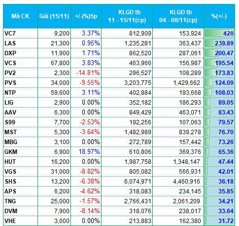 Ở sàn HNX, khối lượng giao dịch bình quân tăng hơn 13% lên 56 triệu đơn vị/phiên, giá trị giao dịch tăng 16% lên 1 ngàn tỷ đồng/phiên.