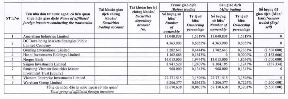 Theo đó, ngày 20/11/202, Dragon Capital đã thông qua 5 quỹ thành viên của mình để bán ra tổng cộng 5,5 triệu cổ phiếu DXG của Tập đoàn Đất Xanh. Cụ thể, quỹ Grinling International Limited bán ra 1,5 triệu cổ phiếu DXG, quỹ Hanoi Investments Holdings Limited bán ra hơn 1,16 triệu cổ phiếu, quỹ Norges Bank bán ra 1 triệu cổ phiếu, quỹ Saigon Investments Limited bán ra 837.334 cổ phiếu, quỹ Warcham Group Limited bán ra 1 triệu cổ phiếu DXG.