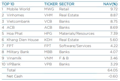 Ngoài VHM, Top10 mã chiếm tỷ trọng lớn nhất của quỹ VEIL còn mã bất động sản khác là KDH của Nhà Khang Điền.