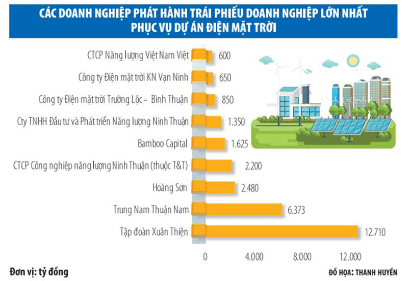 Trong tổng số trái phiếu doanh nghiệp điện mặt trời phát hành năm 2020, hơn 42,5% là của Tập đoàn Xuân Thiện. Đây là doanh nghiệp sử dụng đòn bẩy tài chính cao, khả năng trả nợ rất khó nếu dòng tiền bị ách lại.