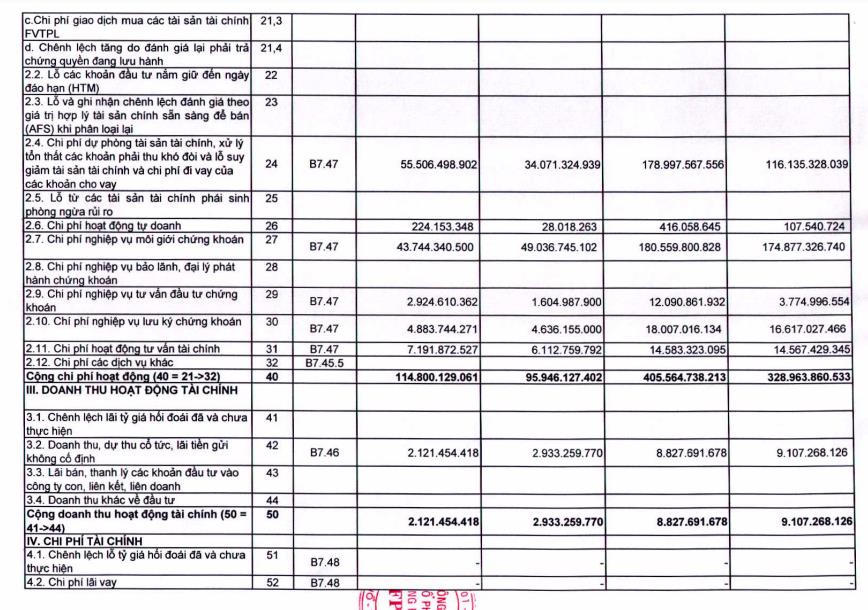 Trong đó, lãi từ các tài sản tài chính ghi nhận qua lãi lỗ (FVTPL) đạt 97,1 tỷ đồng, tăng mạnh so với khoản lỗ 14,5 tỷ đồng cùng kỳ; lãi các khoản cho vay và phải thu tăng 41% lên 162,2 tỷ đồng. Riêng hoạt động môi giới giảm 41% chỉ còn 41 tỷ đồng.