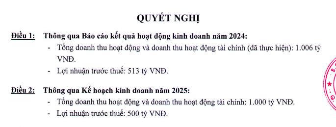 Đáng chú ý, đại hội sẽ thông qua phương án phát hành cổ phiếu để tăng vốn điều lệ từ nguồn vốn chủ sở hữu và phương án phát hành cổ phiếu theo chương trình lựa chọn cho người lao động (ESOP) năm 2025. Tuy nhiên chi tiết về các phương án chưa được công ty công bố cụ thể.
