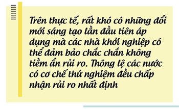 Trên thực tế, rất khó có những đổi mới sáng tạo lần đầu tiên áp dụng mà các nhà khởi nghiệp có thể đảm bảo chắc chắn không tiềm ẩn rủi ro. Thông lệ các nước có cơ chế thử nghiệm đều chấp nhận rủi ro nhất định nhưng điều đó sẽ được cân nhắc với lợi ích thương mại và xây dựng các phương án dự phòng rủi ro để ngăn chặn hậu quả của sự thất bại mà không gây tác động xấu đối với xã hội. Với quy định về tiêu chí như dự thảo, có thể dẫn đến nguy cơ của cơ chế xin - cho khi thực thi. Điều này vô tình đi ngược lại với mục đích thiết lập sandbox là hạ chuẩn đối với rào cản gia nhập thị trường và khuyến khích đổi mới, sáng tạo.