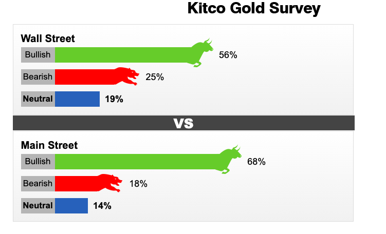 Kết quả của cuộc khảo sát vàng hàng tuần của Kitco News cho thấy tâm lý lạc quan trên diện rộng giữa các nhà phân tích Phố Wall và các nhà đầu tư Phố Main.