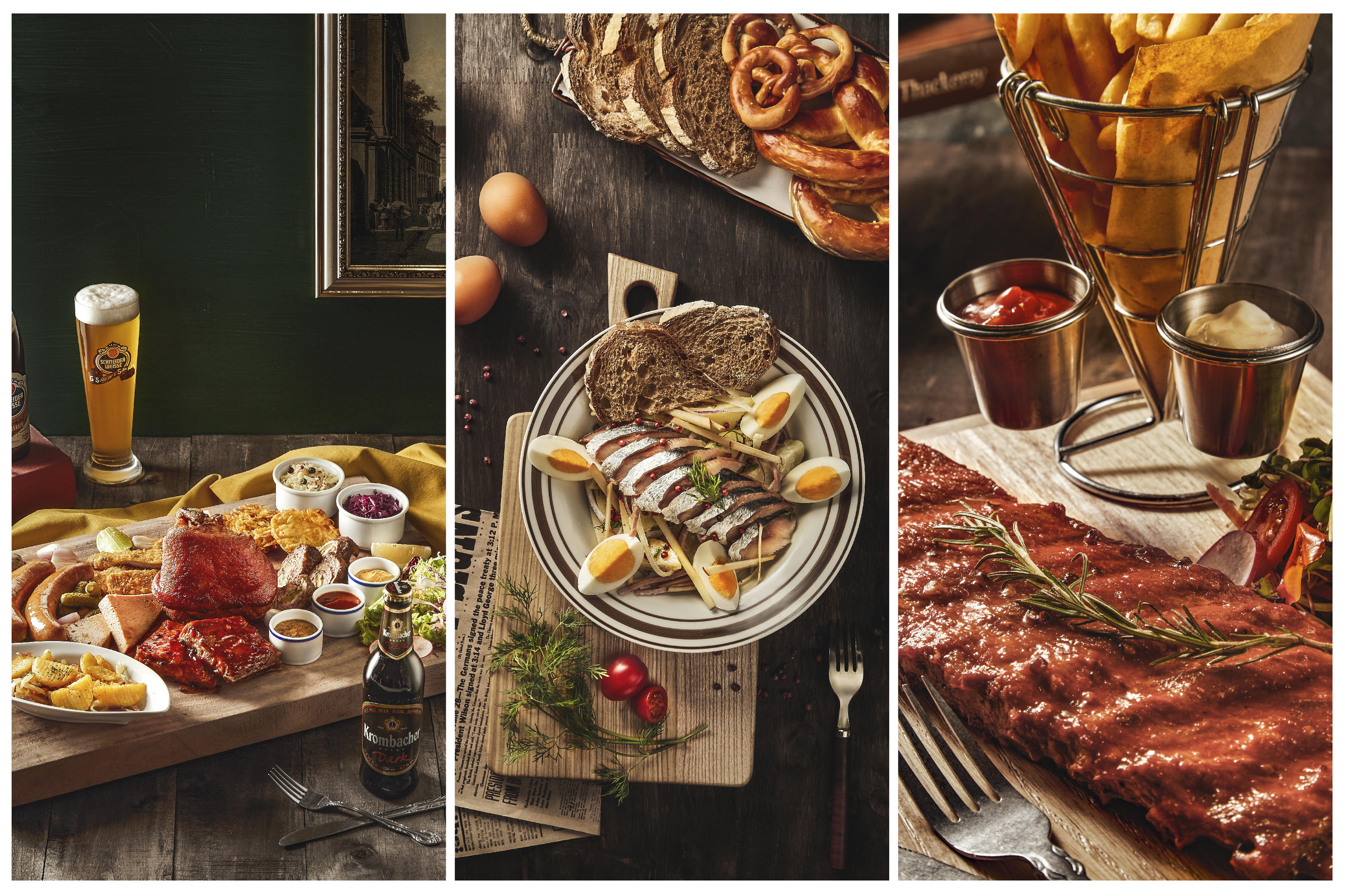 Ẩm thực Đức vô cùng đa dạng, đặc biệt là các món chế biến từ thịt, và nét văn hoá này được nhà hàng truyền tải qua các món ăn đặc biệt vàng ruộm, thơm ngậy. Đó có thể là món giò heo chiên hay giò heo nướng ăn kèm cải bắp chua chua dễ chịu, thơm lừng mùi mù tạt, hạt caraway và lá nguyệt quế. Đó có thể là món sườn nướng BBQ trứ danh của nhà hàng ăn cùng khoai tây chiên và salad, với hương vị ngọt ngào không thể trộn lẫn. Đó cũng có thể là sự kết hợp của đùi heo muối chiên giòn, xúc xích chiên, bò cuộn, heo sốt BBQ, bánh khoai tây kiểu Đức, bánh thịt xay, thịt tẩm bột chiên kiểu Vienna. Vị ngọt thơm của thịt tươi mới trộn với độ giòn rụm của kỹ nghệ chiên giòn, cùng hương thơm đặc trưng của các loại nước xốt, tất cả tạo nên một bản hoà âm độc đáo của hương vị Đức mà bạn chỉ có thể tìm thấy ở Đức Bảo Gartenstadt.