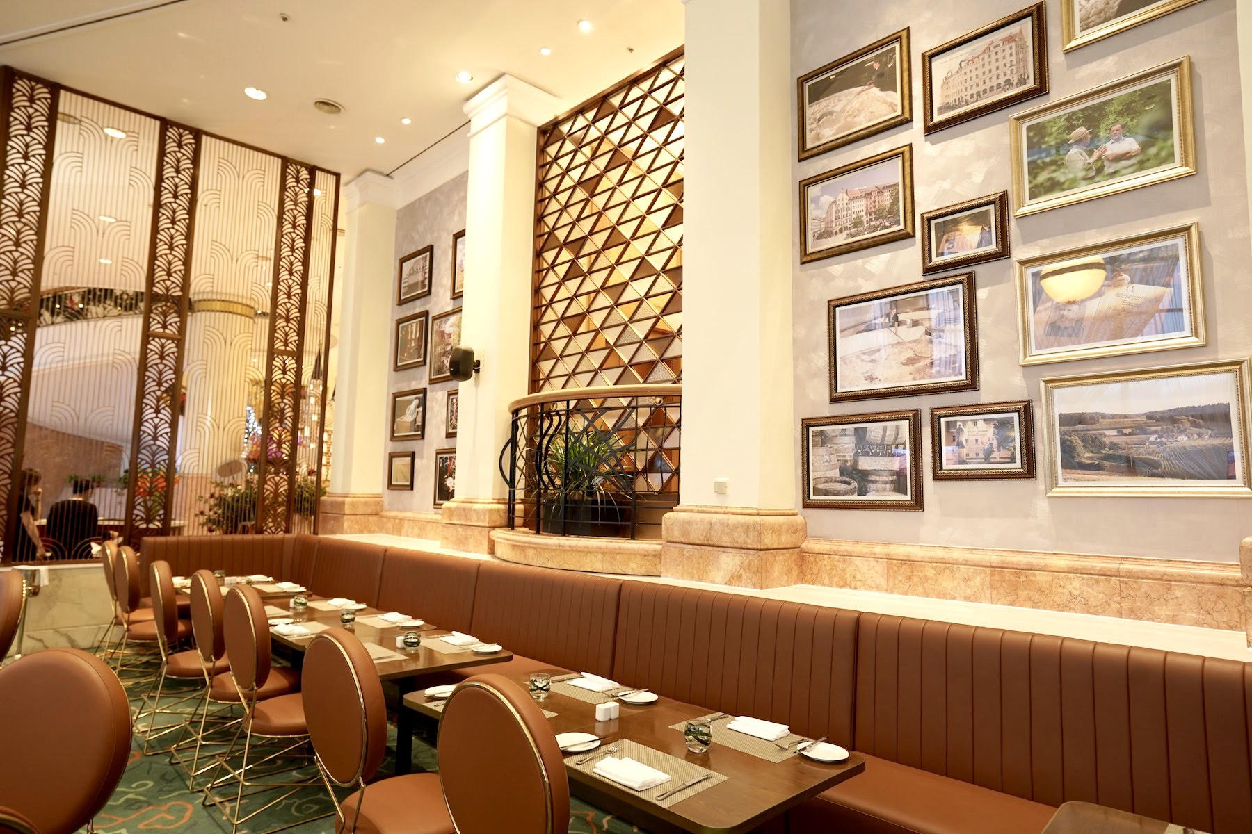 Với cảm hứng thiết kế mang hơi hướng Âu châu khoáng đạt, không gian Đức Bảo Gartenstadt là sự kết hợp hoàn hảo giữa trần nhà cao, khung cửa kim loại hoạ tiết độc đáo ngay lối vào cùng quầy bar hình oval bằng gỗ sang trọng ở khu vực trung tâm nhà hàng. Nội thất gỗ chủ đạo, những bức tranh treo tường ấn tượng cùng các chi tiết decor theo phong cách Rustic … tất cả được sắp đặt một cách khéo léo và tinh tế để tạo nên một không gian sang trọng, ấm cúng, thanh lịch nhưng không kém phần phóng khoáng.