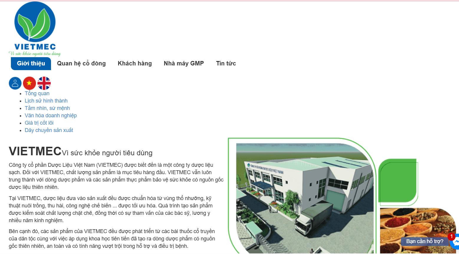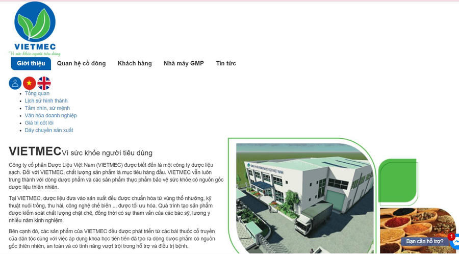 Theo thông tin tại website chính thức của doanh nghiệp, Công ty CP Dược liệu Việt Nam (VIETMEC), thành lập từ ngày 16/3/2011; hoạt động chính trong lĩnh vực sản xuất và kinh doanh dược phẩm, dược liệu, thực phẩm chức năng, thiết bị y tế và mỹ phẩm.