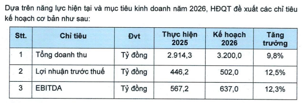 Tỷ lệ cổ tức năm 2026 dự kiến là 5 - 8%/vốn điều lệ bằng tiền, Hội đồng quản trị được giao quyết định tùy theo kết quả kinh doanh năm 2026.