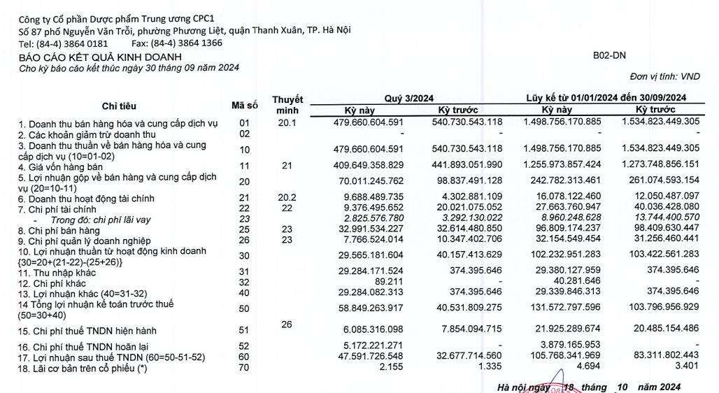 Về kết quả kinh doanh, tính chung 9 tháng đầu năm, DP1 ghi nhận doanh thu thuần đạt 1.498 tỷ đồng, giảm nhẹ 2,34% so với cùng kỳ năm ngoái.