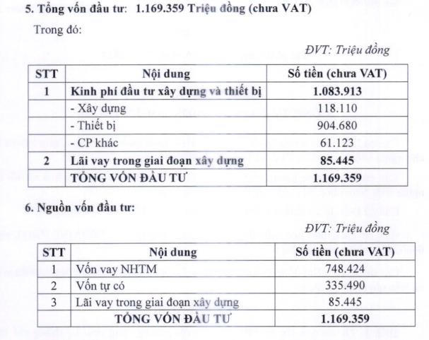 Về tiến độ triển khai dự án sẽ được chuẩn bị từ tháng 6/2024, thực hiện đầu tư từ tháng 11/2024, sản xuất thử từ tháng 11/2026 và dự kiến đi vào hoạt động khoảng tháng 11/2027.