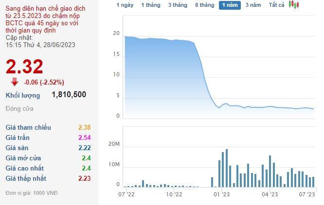 Từ đầu tháng 4/2023, Tập đoàn Egroup đã không còn là công ty mẹ của Apax Holdings khi lượng nắm giữ chỉ chưa tới 29 triệu cổ phiếu tương ứng tỷ lệ 34,81%. Cổ phiếu IBC cũng bị HoSE chuyển từ kiểm soát sang diện hạn chế giao dịch kể từ 23/5/2023 do chậm nộp BCTC năm 2022 được kiểm toán quá 45 ngày so với thời hạn quy định. Thị giá kết phiên 28/6 đạt 2.320 đồng/cp, mất gần 90% kể từ cú “lao dốc” lịch sử hồi cuối năm 2022.