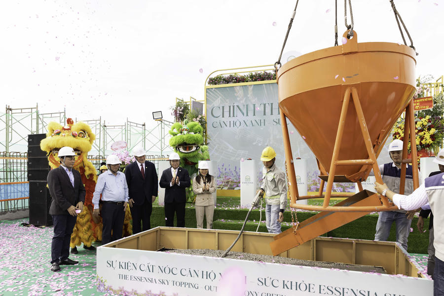 Công ty Cổ phần Địa ốc Phú Long đã tổ chức Lễ cất nóc tòa tháp đôi Essensia Sky - dự án căn hộ xanh - sức khỏe đầu tiên trong quần thể Essensia Nam Sài Gòn. Sự kiện đánh dấu bước ngoặt quan trọng trong tiến trình triển khai dự án, đồng thời khẳng định cam kết mạnh mẽ của Phú Long về tiến độ, chất lượng thi công. Với sự tham gia của hơn 900 kỹ sư và công nhân giàu kinh nghiệm, cùng hơn 10.000 giờ lao động, dự án đã vượt tiến độ 60 ngày và hướng tới mục tiêu bàn giao vào quý IV/2026.