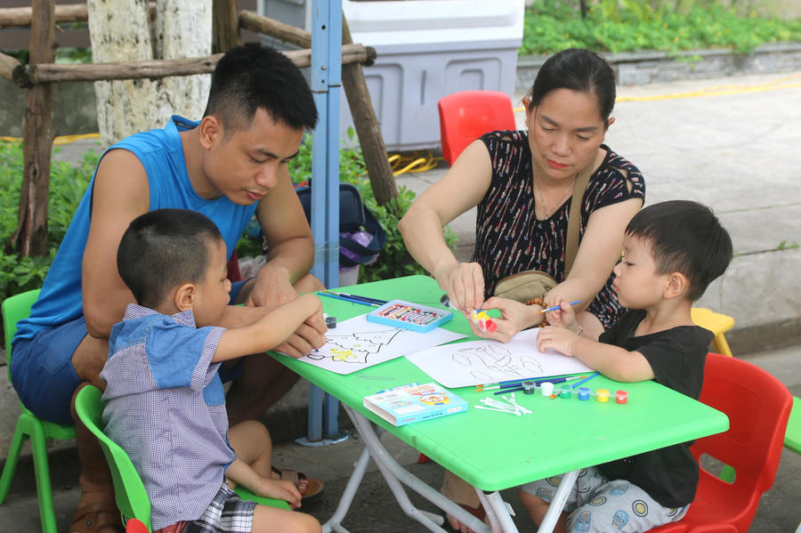 Chương trình “Vui Tết thiếu nhi – Cùng bé khám phá sắc màu diệu kỳ” mang tới cho cư dân nhí nhiều hoạt động hấp dẫn như vẽ tranh màu sáp, tranh màu nước, tranh/thiệp tạo hình bằng lá cây, hoa tươi, hoa khô... Bé N.K.T (8 tuổi) vui vẻ cho biết: Con rất vui vì hôm nay được vẽ tranh, tô màu và gặp gỡ các bạn mới. Con mong 1/6 sang năm lại được chơi vui như thế này."