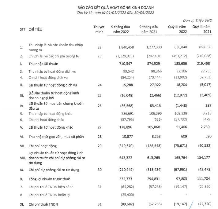Về kết quả kinh doanh, quý III/2022, EVN Finance ghi nhận thu nhập lãi thuần quý III đạt hơn 185 tỷ đồng, giảm 15,5% so với cùng kỳ năm trước.