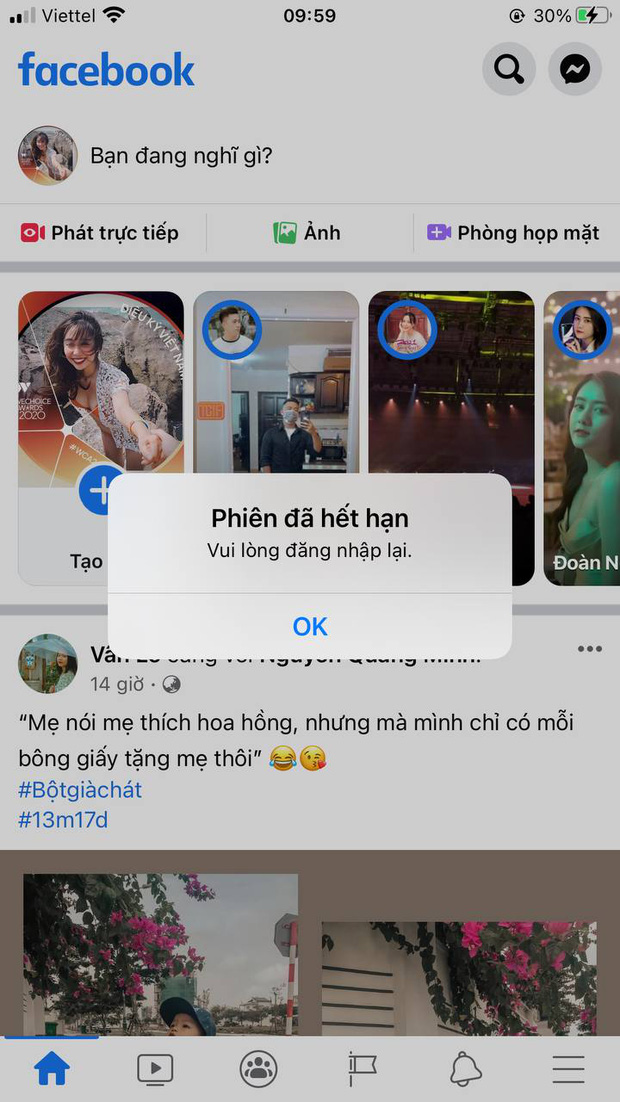 Cụ thể, Facebook bị lỗi tự động đăng xuất khỏi các thiết bị điện thoại, iPad. Khi người dùng đang truy cập sử dụng nền tảng này thì nhận được thông báo "Phiên đăng nhập hết hạn".