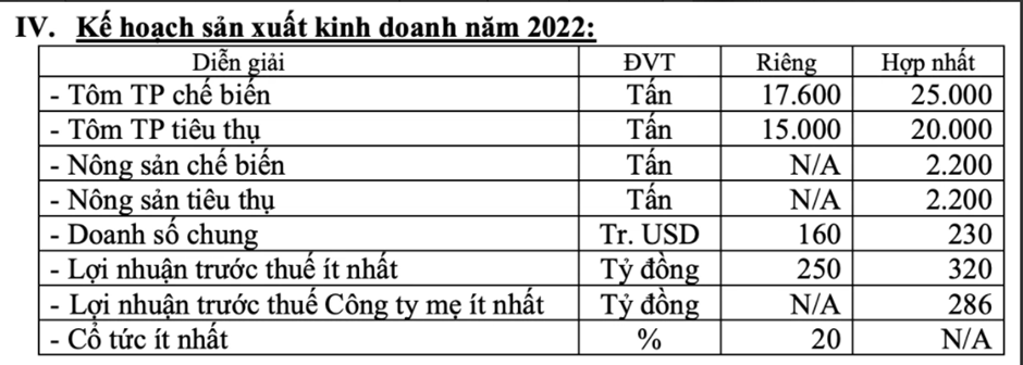 Do đó trong năm 2022, công ty dự kiến sẽ mở rộng quy mô sản xuất với một nhà máy chế biến tôm hoàn thành vào quý 3 năm 2022. 52 ha đất nuôi tôm của KAF sẽ được đưa vào hoạt động nửa cuối năm 2022, dự kiến mở rộng lên thành 500 ha nuôi tôm từ nay đến năm 2025.