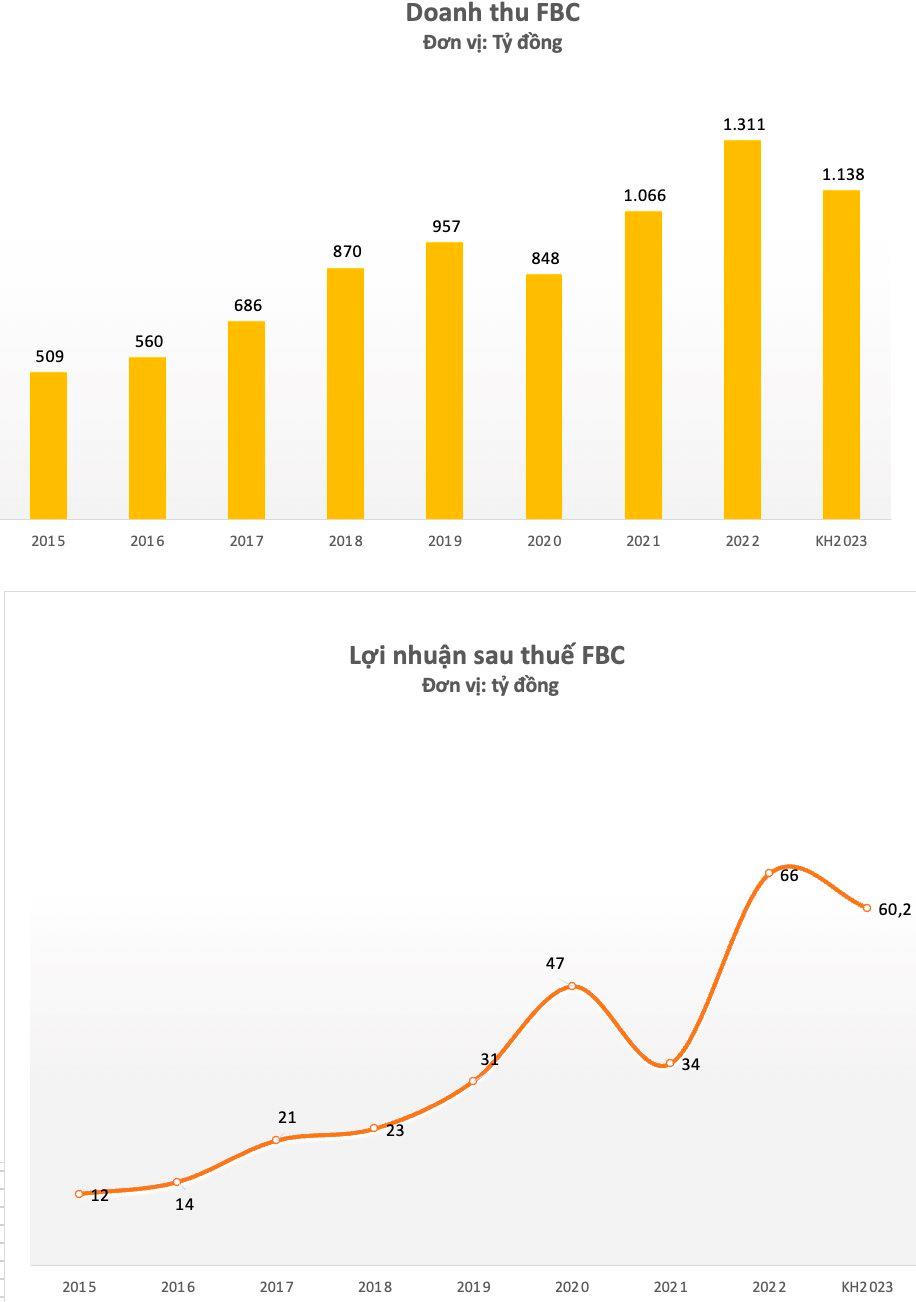 Riêng năm 2022, doanh thu Fomeco đạt 1.310 tỷ đồng, tăng 23% so với thực hiện năm 2021. Lợi nhuận trước thuế, sau thuế năm 2022 của Fomeco đều tăng gấp đôi cùng kỳ lần lượt đạt 82 tỷ và 66 tỷ đồng, EPS cũng cải thiện mạnh từ 5.101 đồng lên 9.942 đồng. Doanh thu và lợi nhuận năm 2022 của FBC đều là mức cao kỷ lục từ trước đến nay.