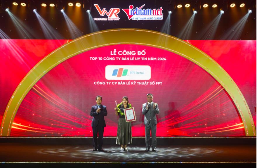 Trước đó, vào ngày 16/10, tại Lễ Công bố và vinh danh TOP 10 - TOP 50 Thương hiệu Mạnh Việt Nam 2024, Công ty Cổ phần Bán lẻ Kỹ thuật số FPT (FPT Retail) cũng vinh dự nhận giải thưởng “Thương hiệu mạnh Việt Nam 2024 - Tiên phong đổi mới sáng tạo”, đánh dấu cột mốc năm thứ 11 liên tiếp doanh nghiệp nhận được giải thưởng này.